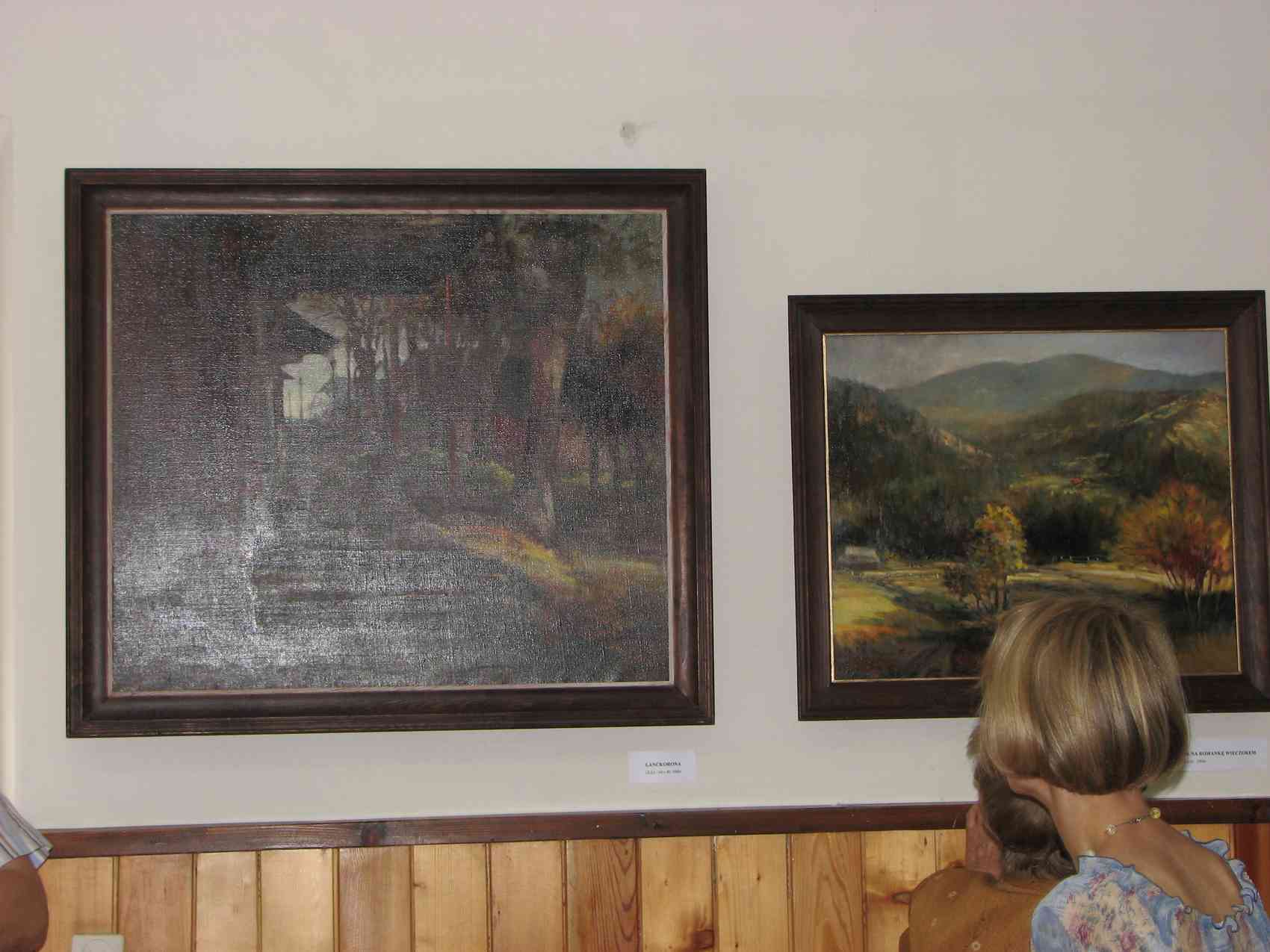 Także w niedzielę 27 maja odbyła się wystawa prac artystycznych pana Wacława Sobieraja. Przedstawił on zwiedzającym całą serią swoich prac różnej tematyki wykonywanych w ostatnich latach. Każdy obraz związany jest z konkretnym miejscem i przeżyciem, których szczegóły mógł autor otwierać przed nami godzinami. Zwiedzający poznali również techniki wykonywania obrazów, które pan Wacław wraz z małżonką przedstawili zainteresowanym w sposób wyczerpujący. Jesteśmy wdzięczni artystom za chęć podzielnia się przeżyciami swojego bogatego dorobku.