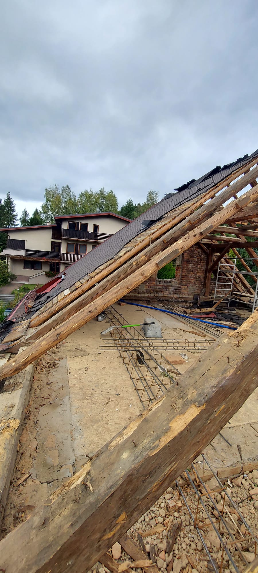 W październiku mogliśmy rozpocząć prace związane z demontażem istniejących drewnianych stropów, które były w bardzo złym stanie technicznym i musimy je zastąpić nowym stropem żelbetowym. Nowy strop pozwoli nam w przyszłości na bezpieczne użytkowanie poddasza zgodnie z jego nowym przeznaczeniem, czyli utworzeniem nowej, większej salki na spotkania różnych grup przyparafialnych czy organizowanie różnych spotkań dla naszej parafialnej wspólnoty. Przygotowujemy strop do zalania betonem. W tym tygodniu skończyliśmy wykonywanie belek żelbetowych, szalunków oraz rozebraliśmy konstrukcję starego dachu, który częściowo zjadły korniki.